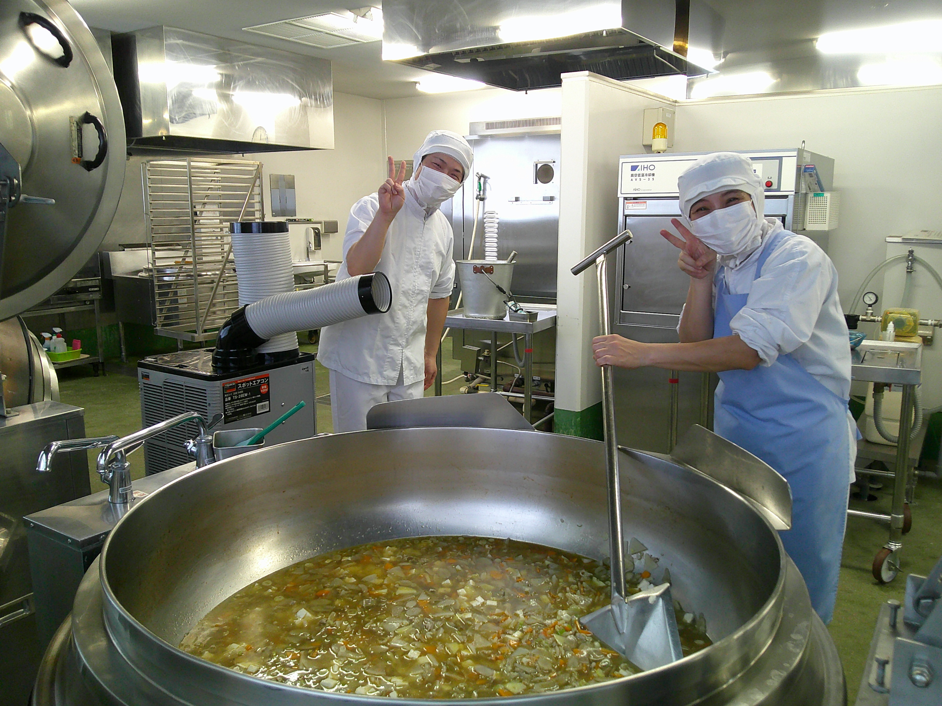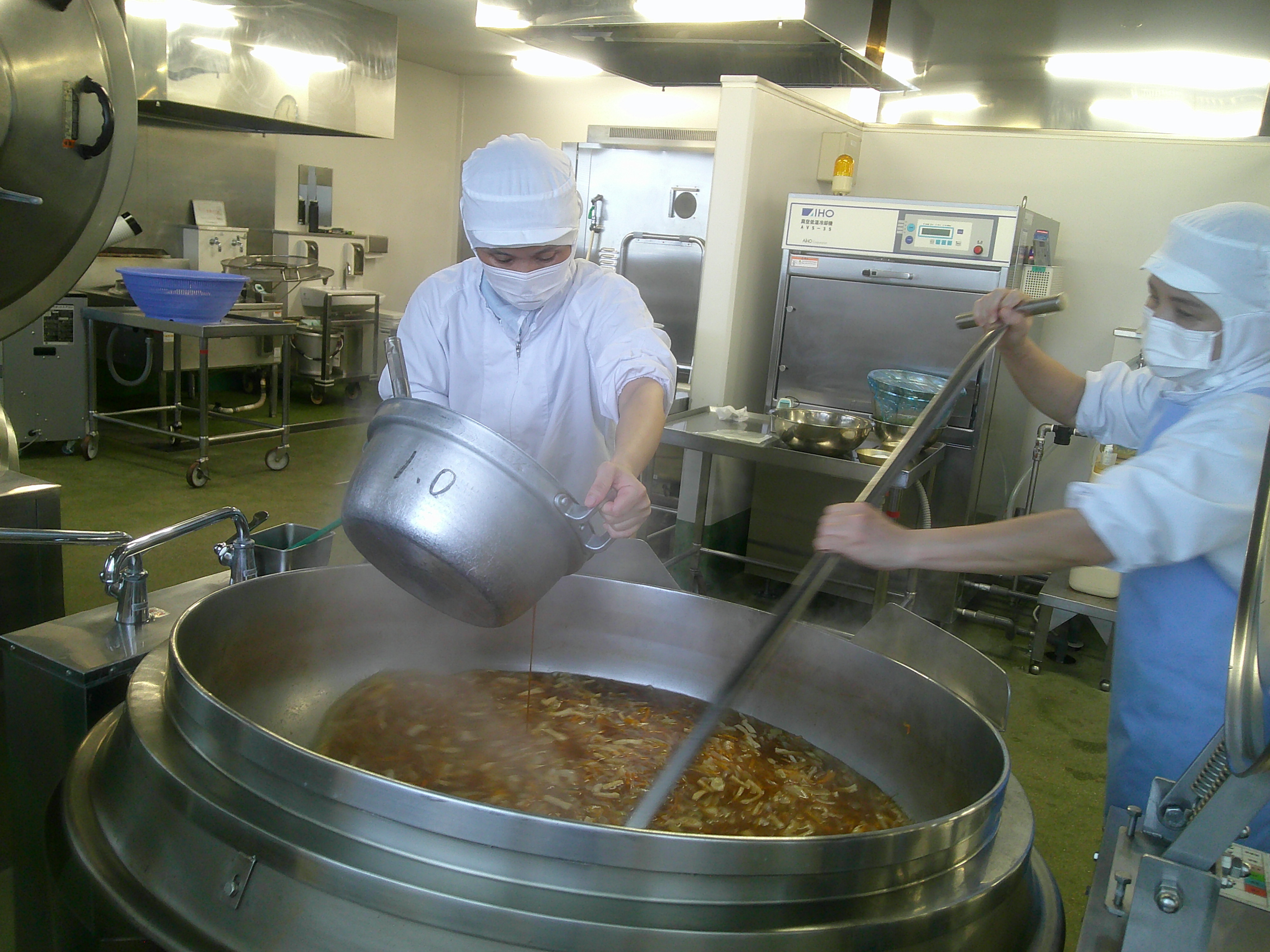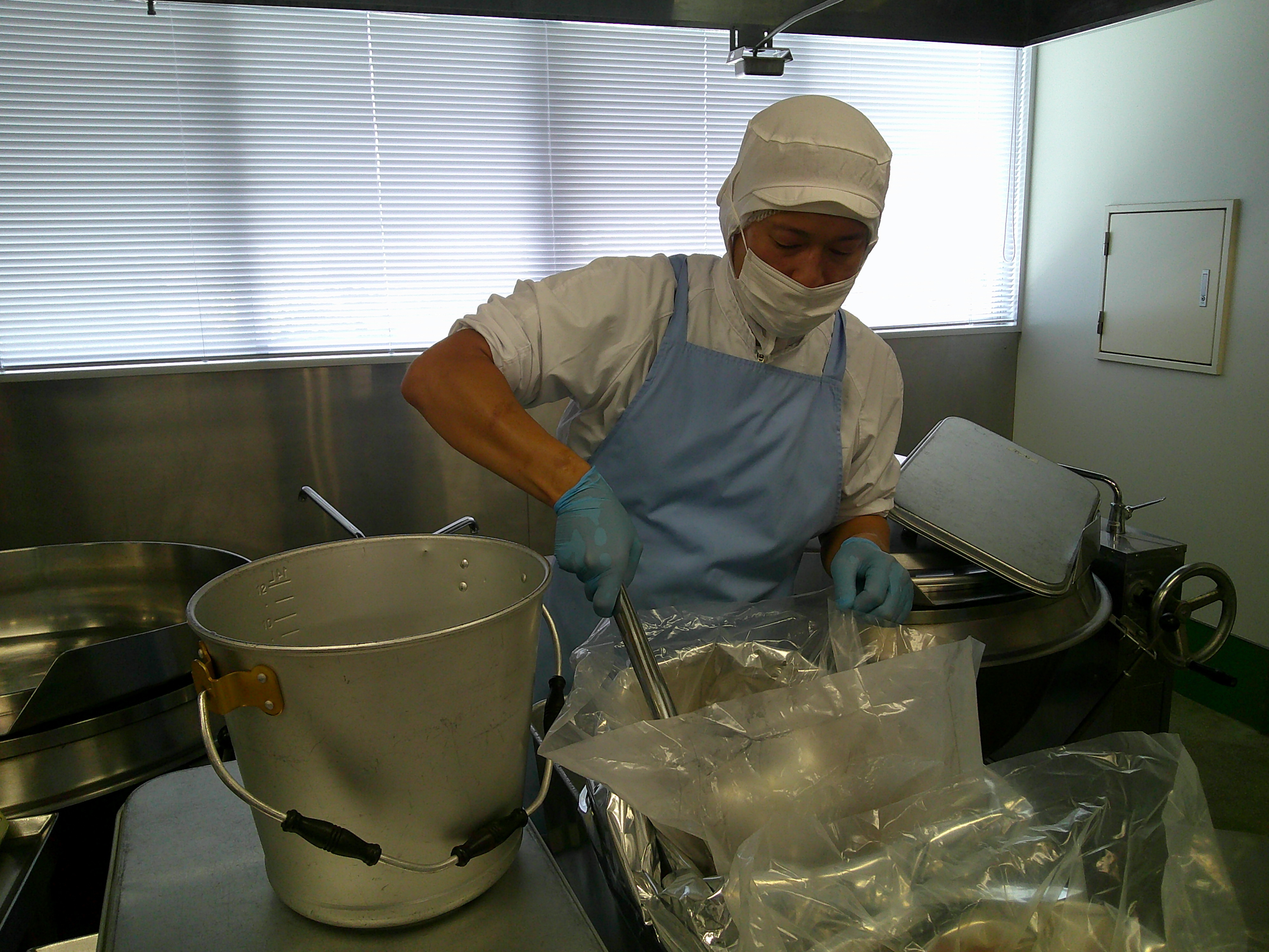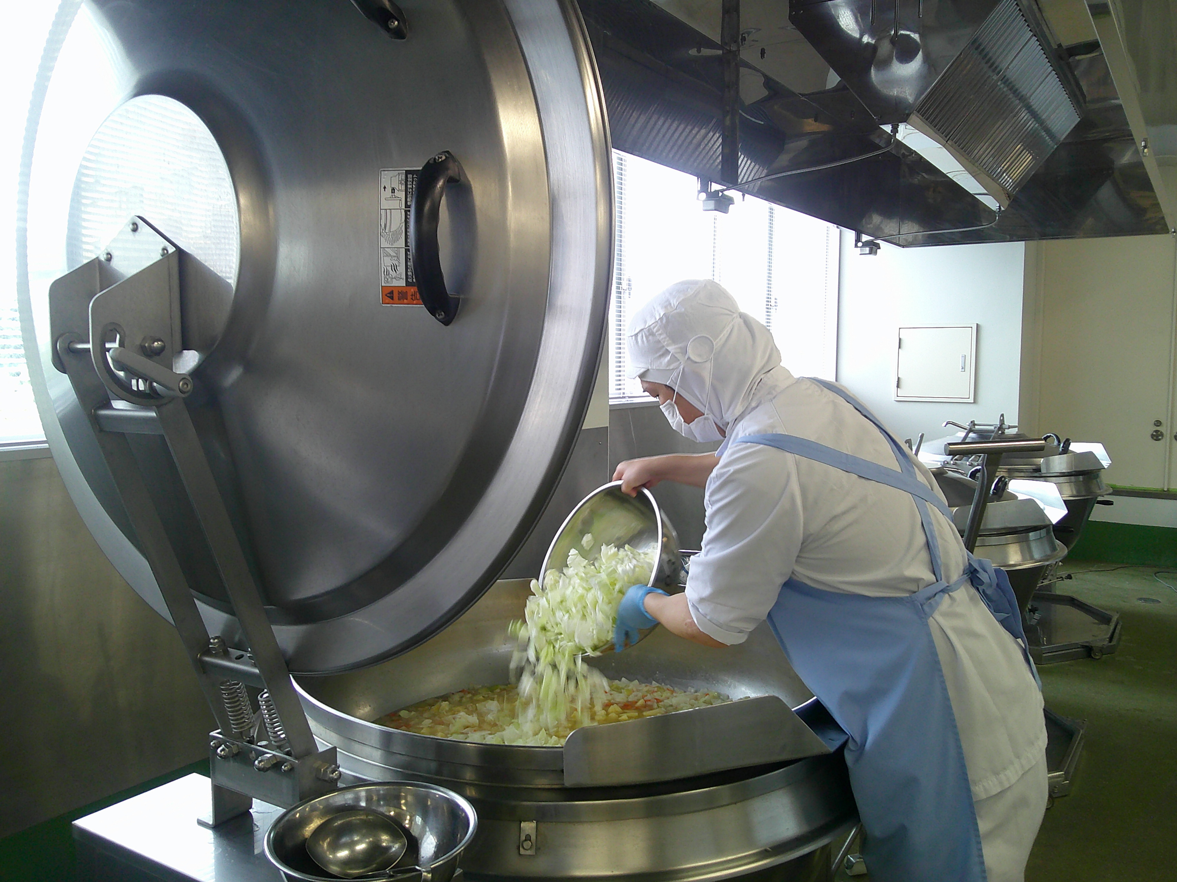 調理室は暑い中、城南中の生徒に安心で美味しい給食を作っています。