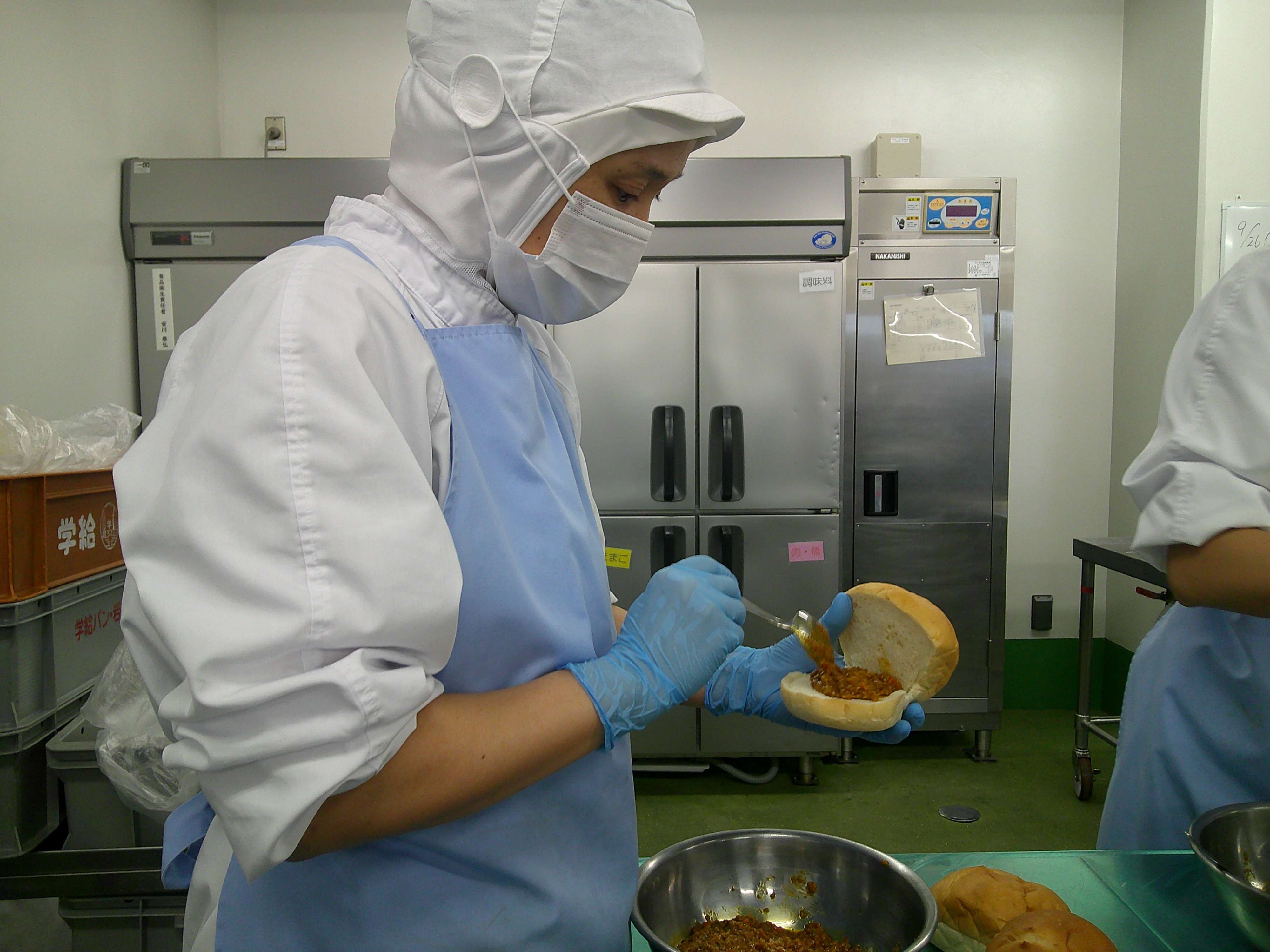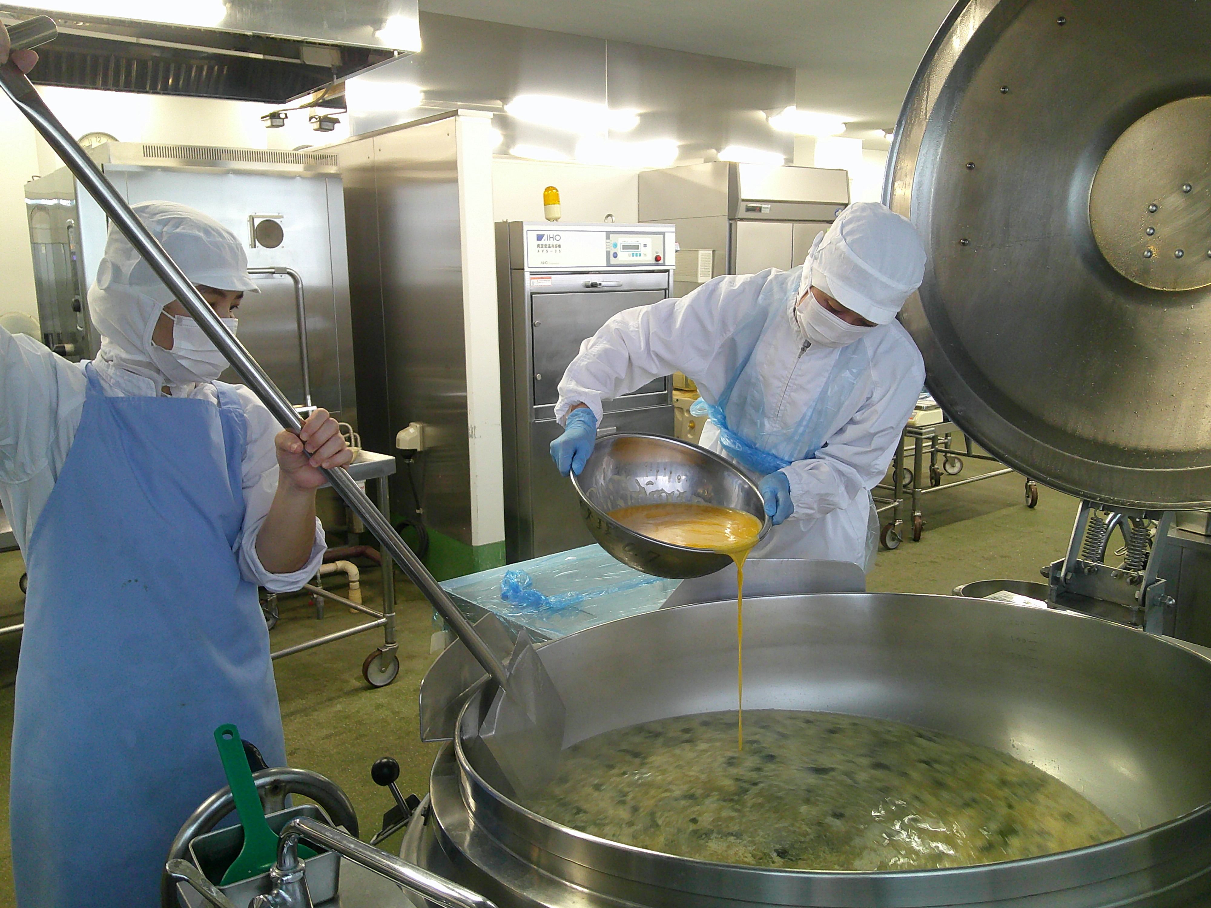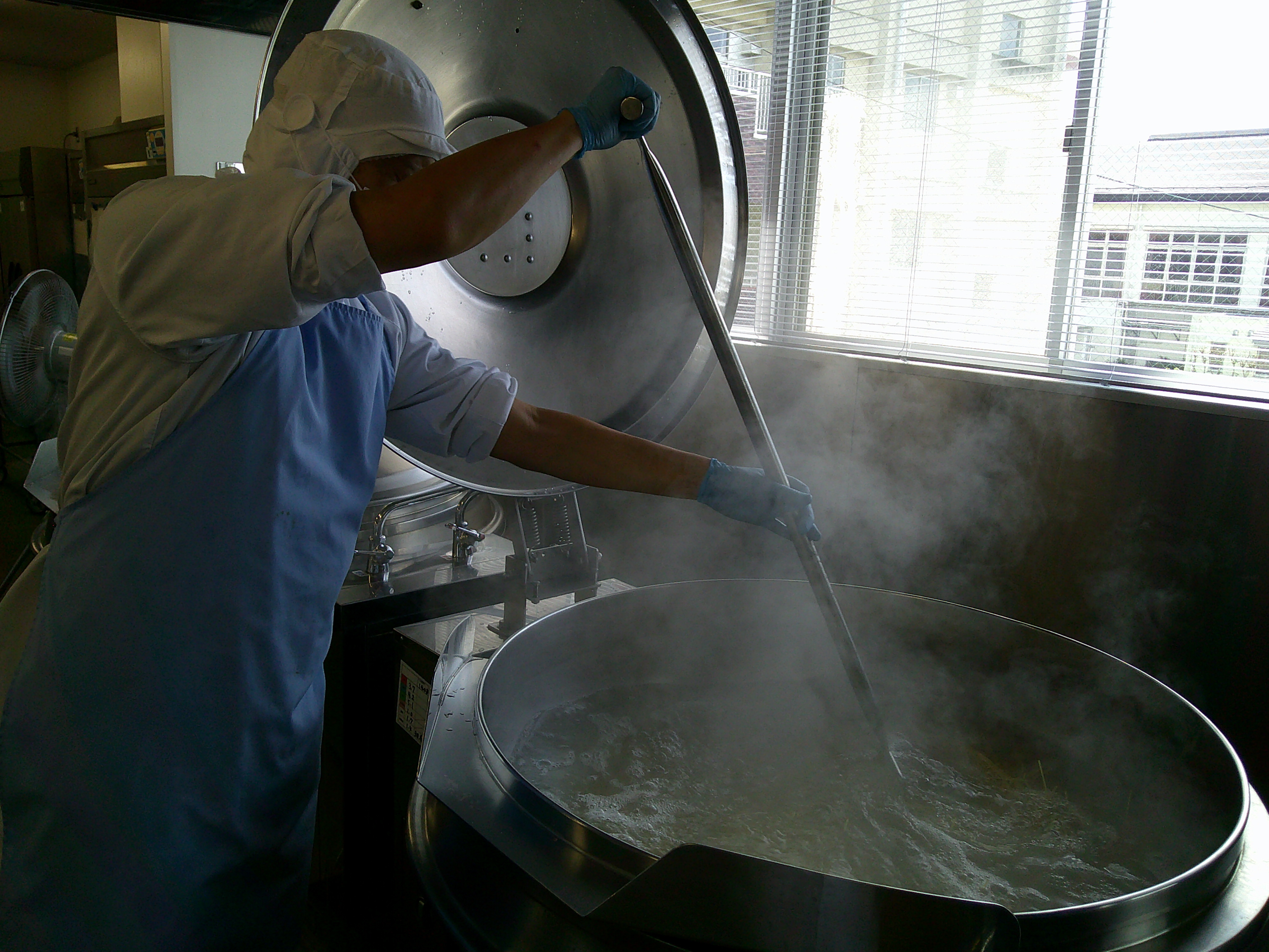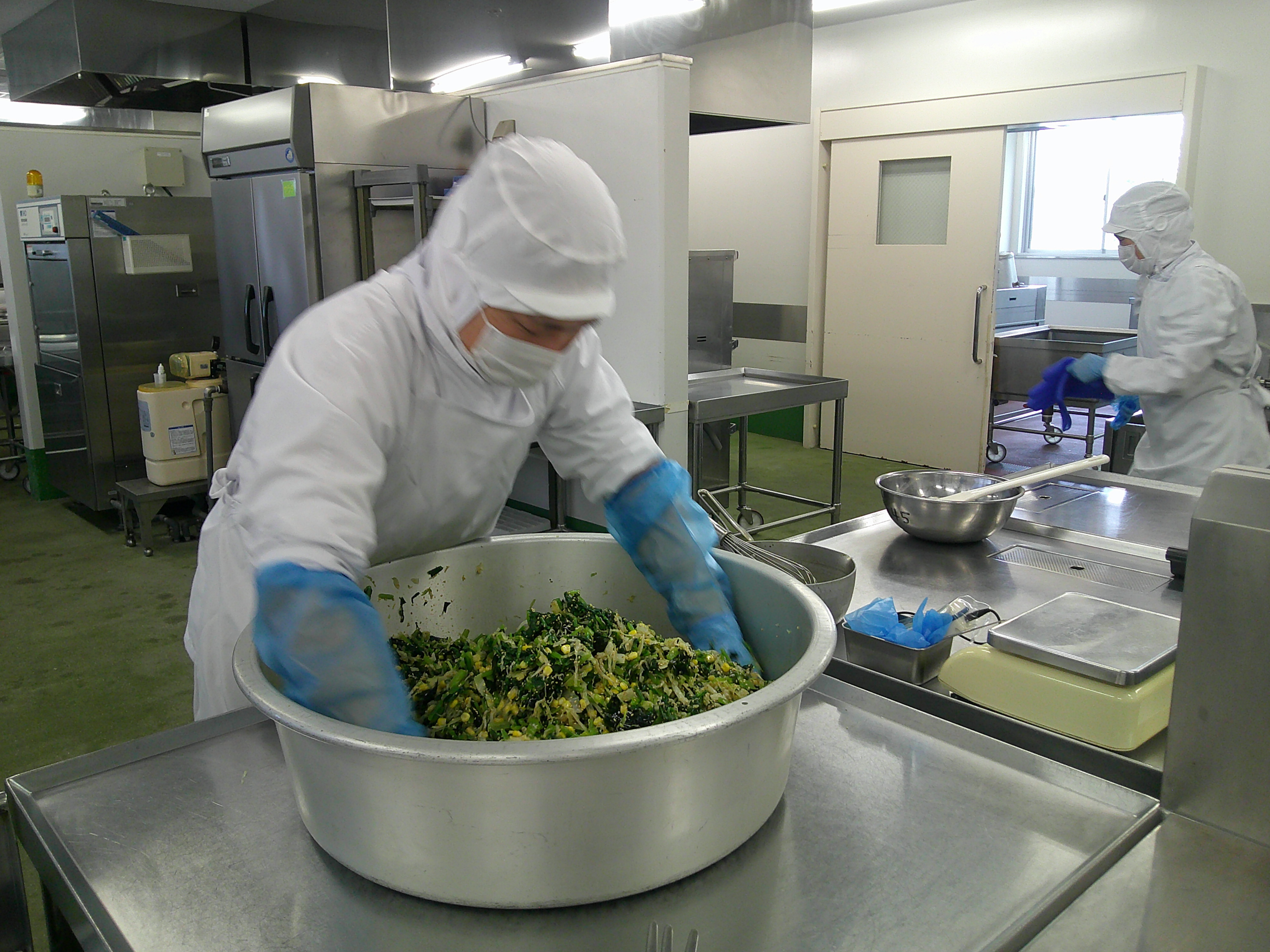 調理室は暑い中、城南中の生徒に安心で美味しい給食を作っています。