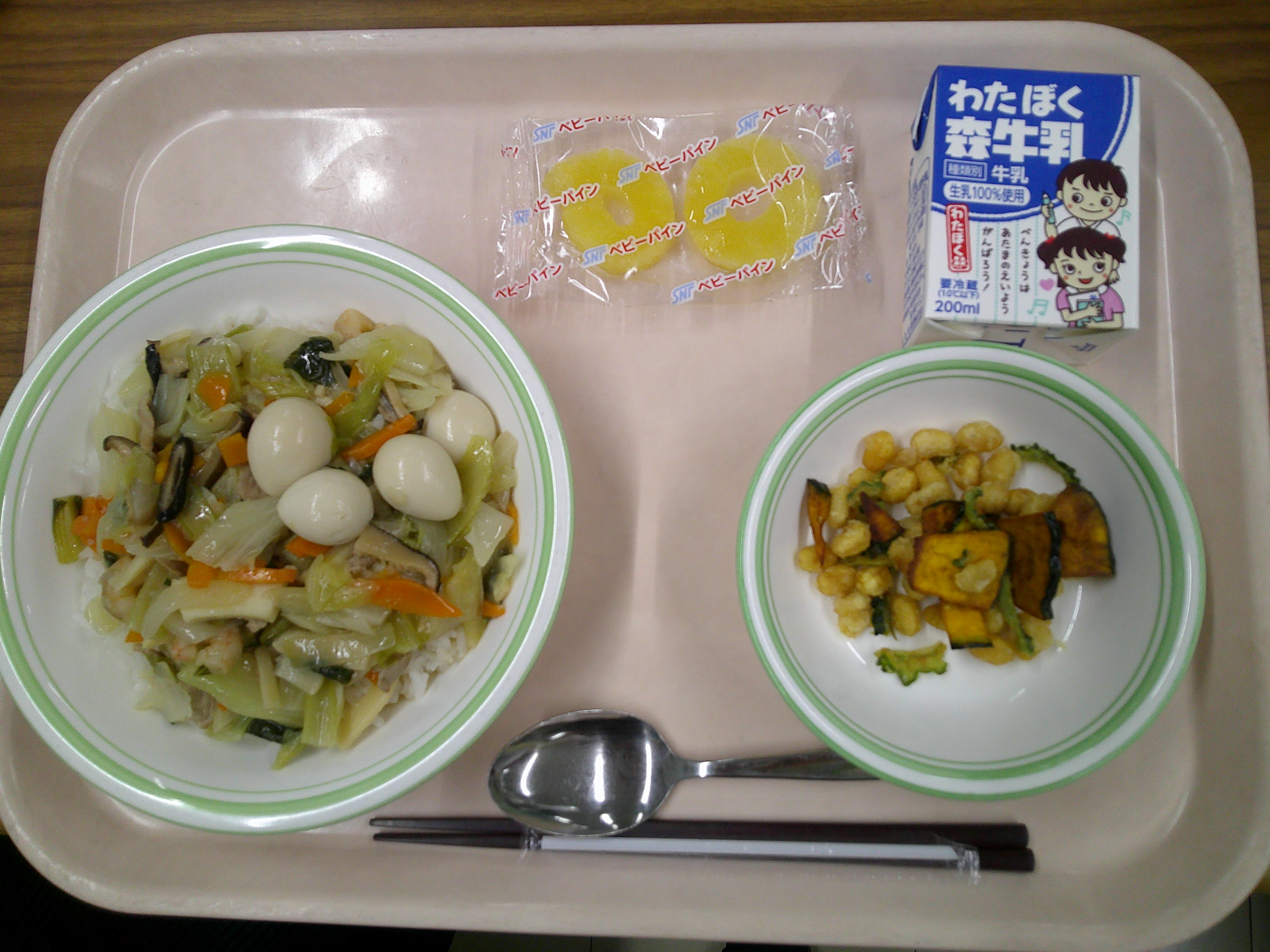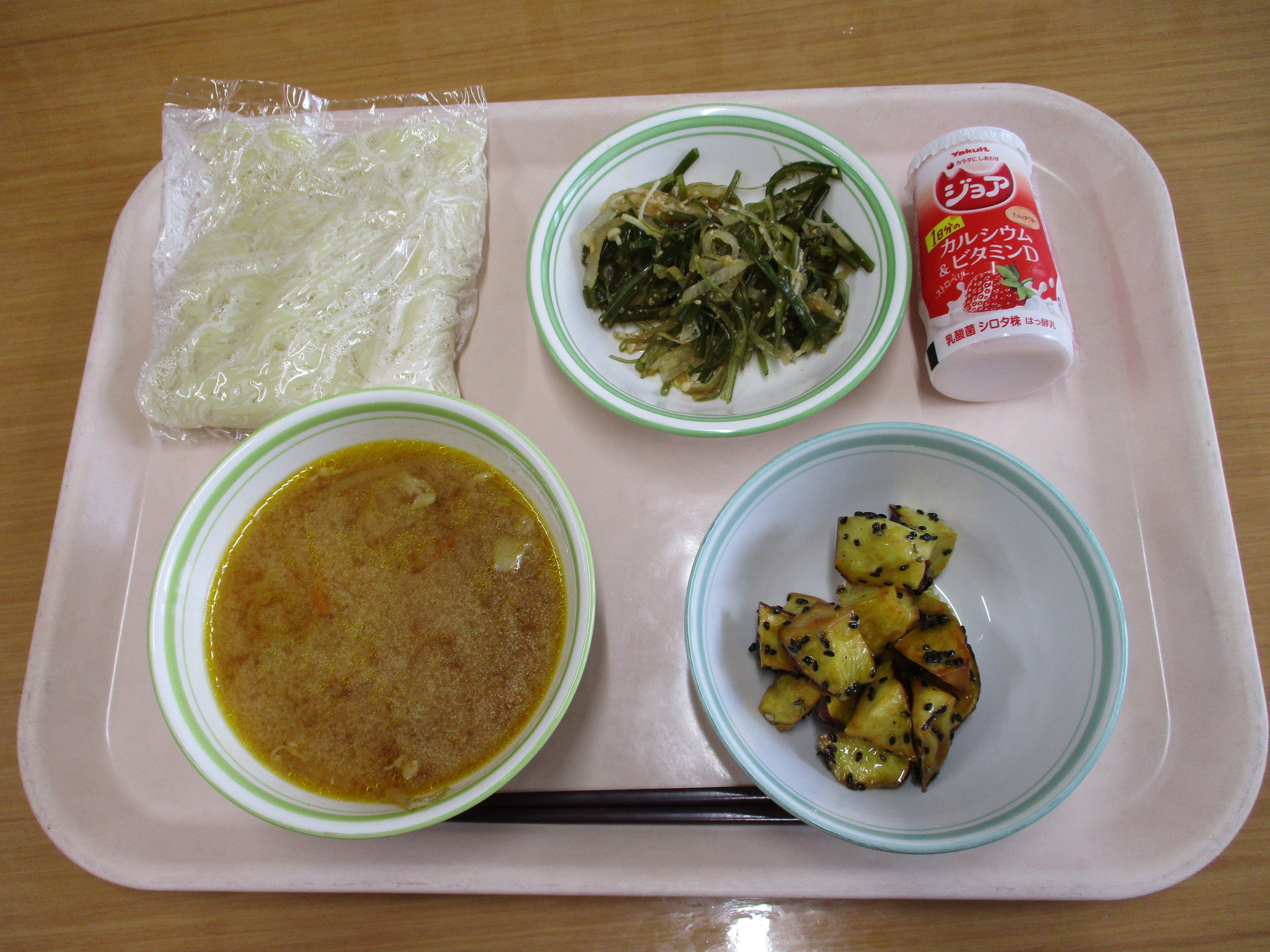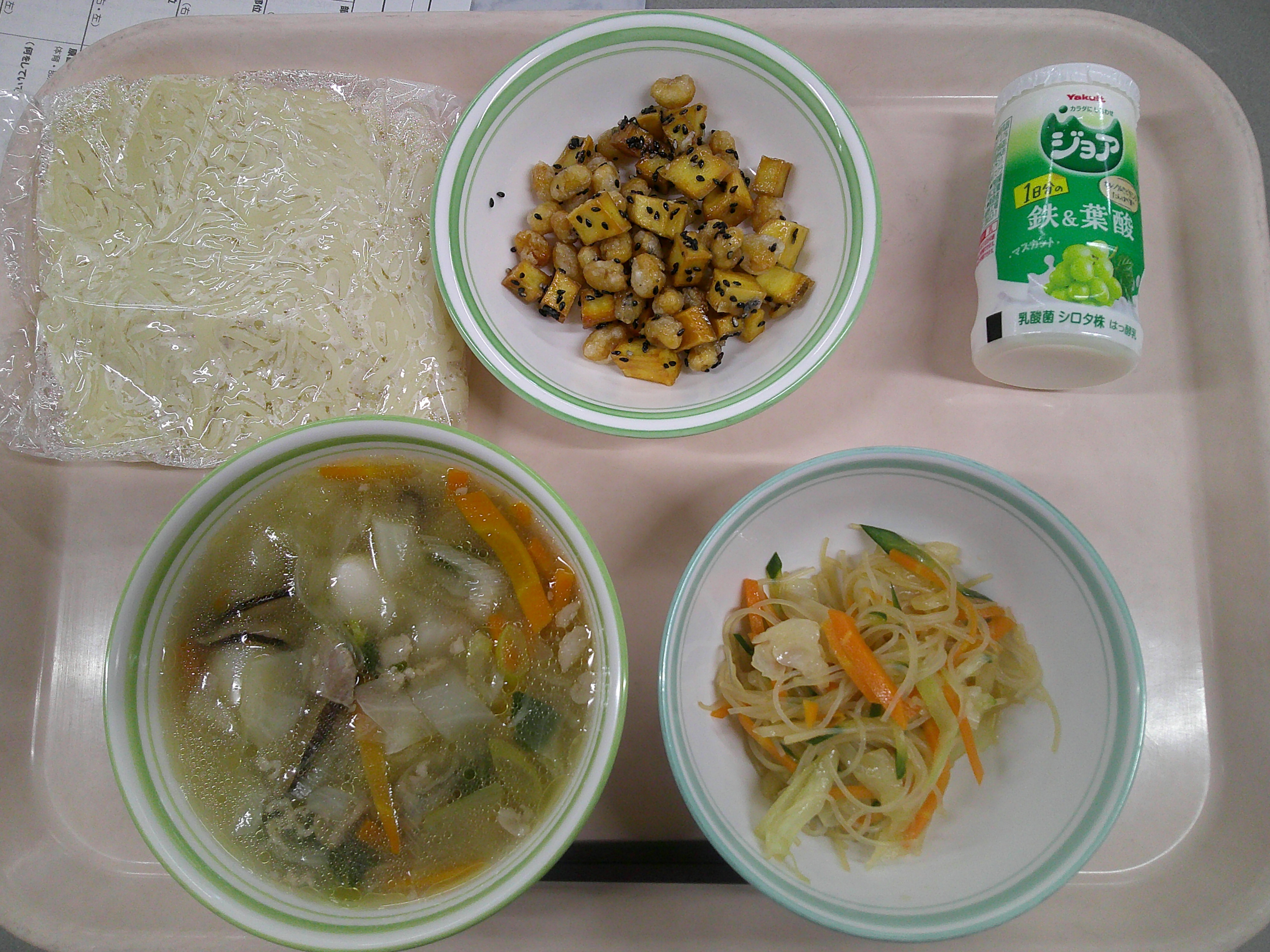 牛乳、タンメン、豆とさつまいものかりんとう、シルバーサラダ