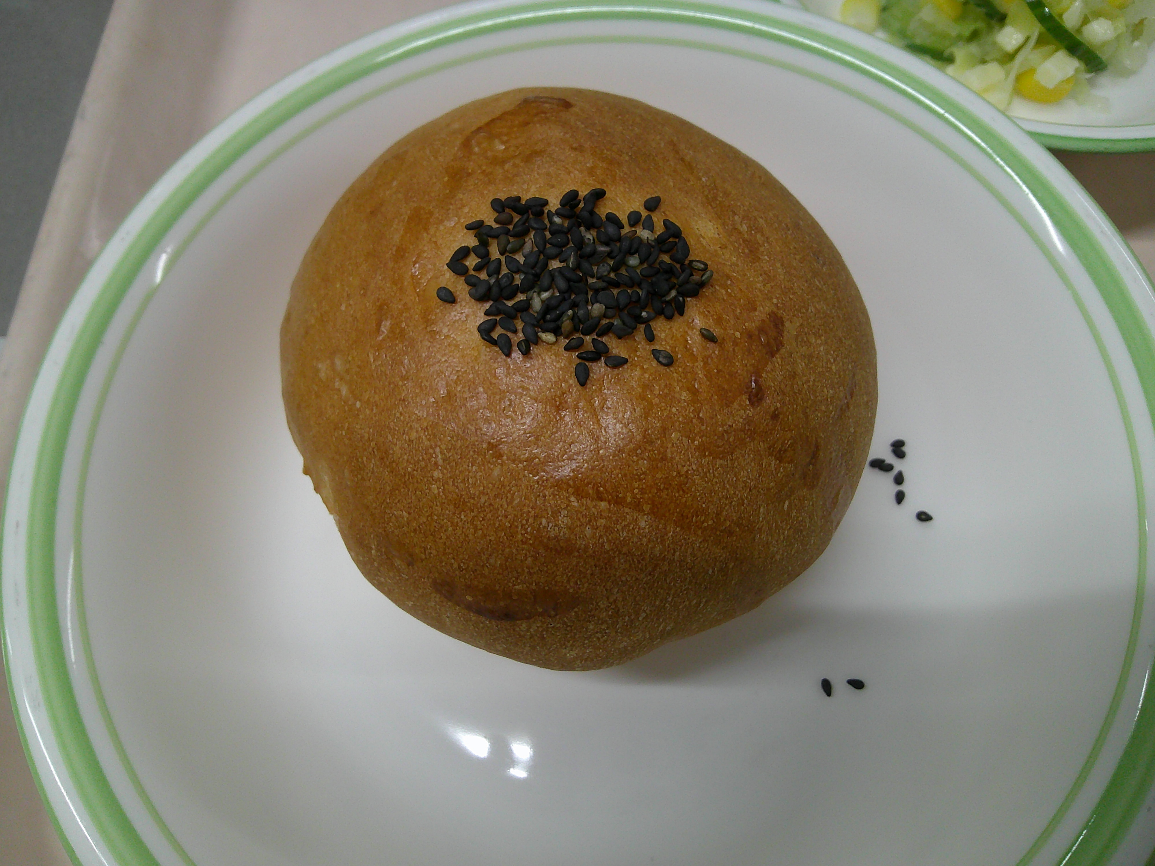 牛乳、手作りあんぱん、チーズサラダ、肉団子スープ